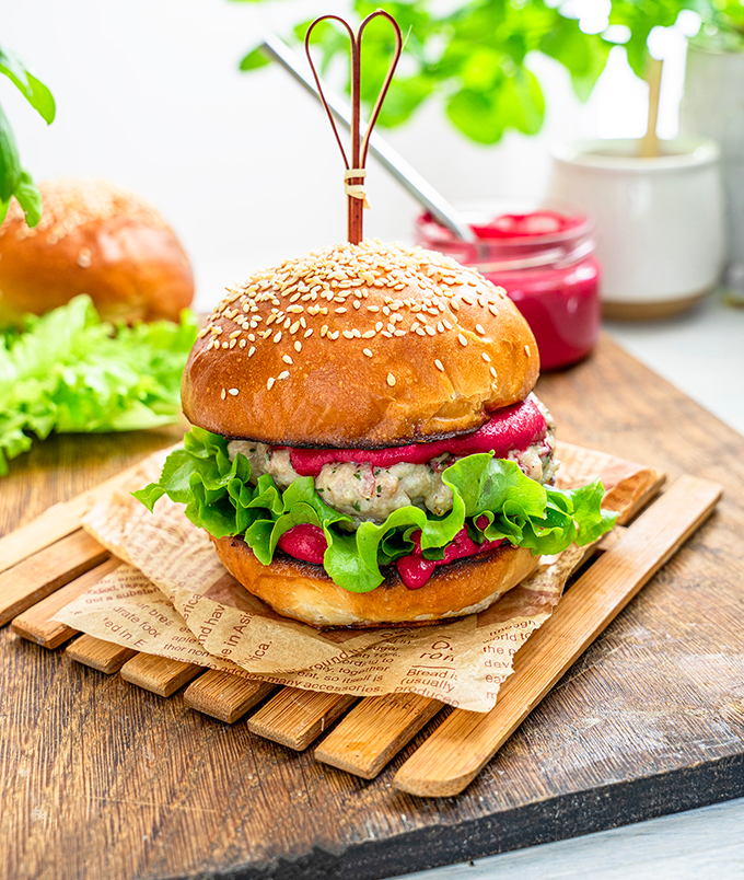 A húsa lágy és enyhén édeskés, így jól harmonizál fűszerekkel, friss zöldségekkel és karakteres szószokkal, és mivel sovány, nem zsírosodik el sütés közben, így a burger nem tocsog, hanem szaftos és könnyű marad és a gyors sütésnek hála nem is szárad ki.